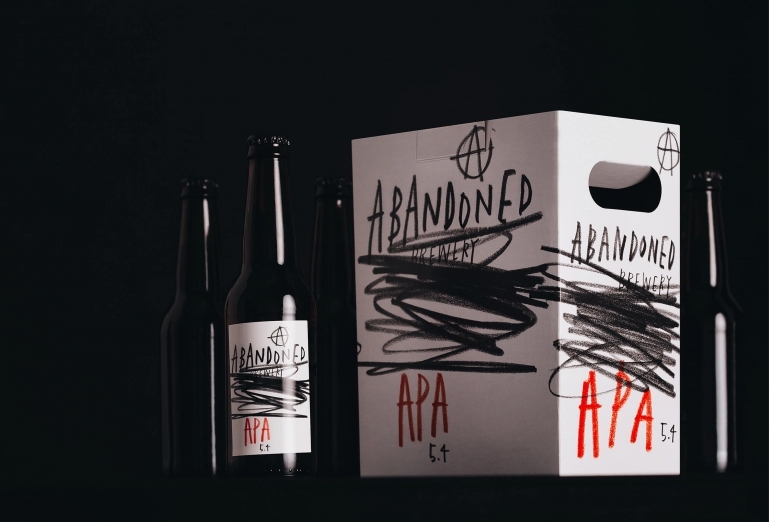 Abandoned Brewery reclaims an authentic story of failure and forgotten spaces with an uncompromising brand for outsiders fuelled with the energy of self-belief. There is no logo. Instead, we have the Abandoned name. We unashamedly appropriated the anarchy symbol and applied it to this – it embraces the same raw and irreverent attitude of the brewery. It’s the anti-brand of craft beer brands. The identity has no fixed set of graphic elements; instead, a distinctive visual language reflects the brand’s ethos. Everything from the sparse colour palette to the explicit use of hand-drawn typography makes the Abandoned brand stand out.